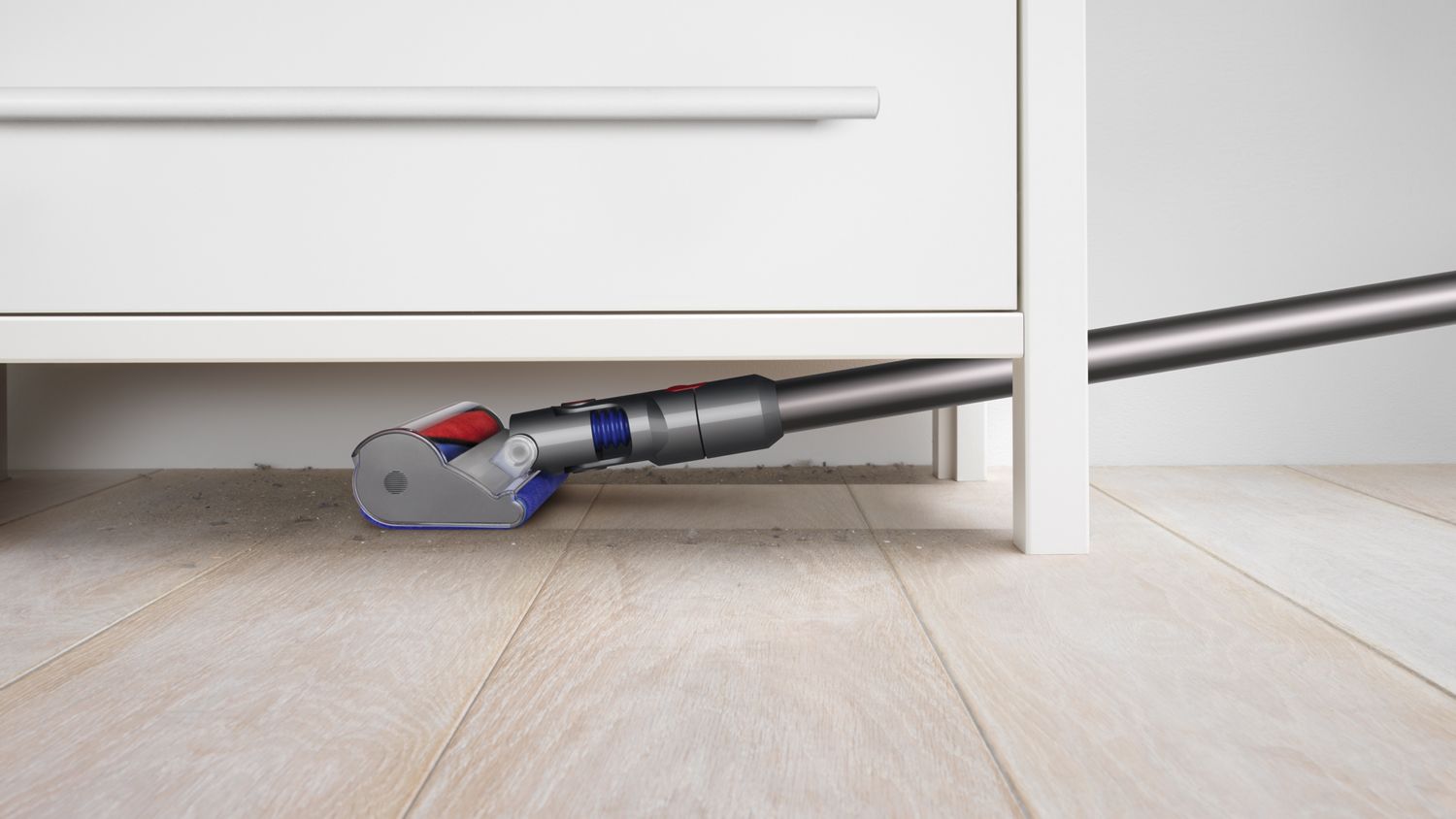 Guarda y recarga tu aspiradora Dyson V8™ de una forma práctica para que siempre esté lista para usarse.